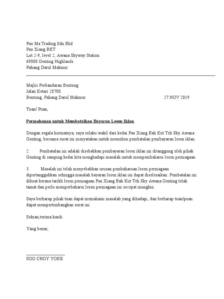 Contoh Surat Rasmi Pembatalan Lesen Perniagaan Desktop Pc S Amd Otosection